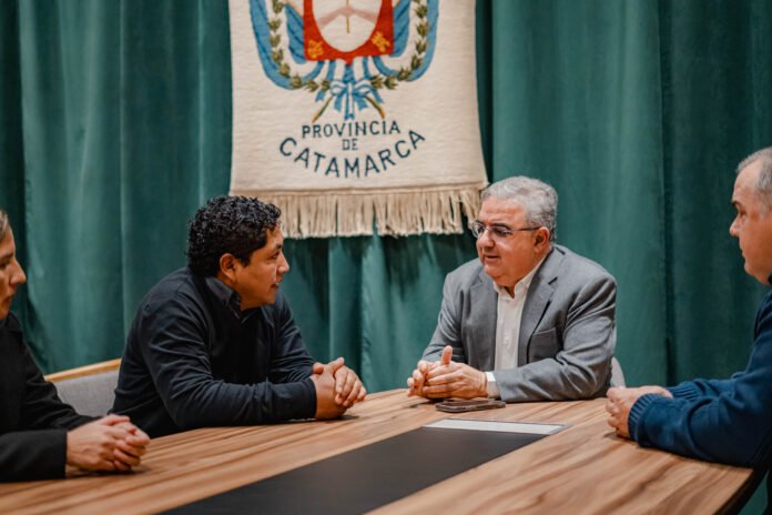 El gobernador Raúl Jalil recibió en Casa de Gobierno al intendente de Villa Vil, Ramón Gutiérrez, con el objetivo de avanzar en la articulación de tareas para reconstruir las viviendas y establecimientos destruidos en Laguna Blanca tras el fuerte temporal de viento y tierra que afectó a la localidad.